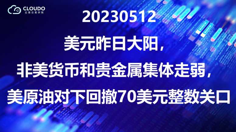 20230512-美元昨日大阳,非美货币和贵金属集体走弱,美原油对下回撤70美元整数关口