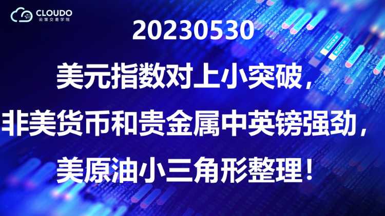 20230530-美元指数对上小突破,非美货币和贵金属中英镑明显强劲,美原油小三角形整理
