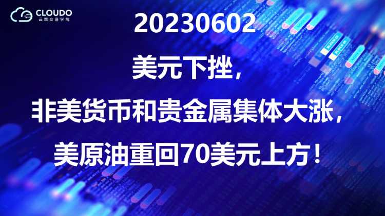 20230602-美元下挫,非美货币和贵金属集体大涨,美原油重回70美元上方