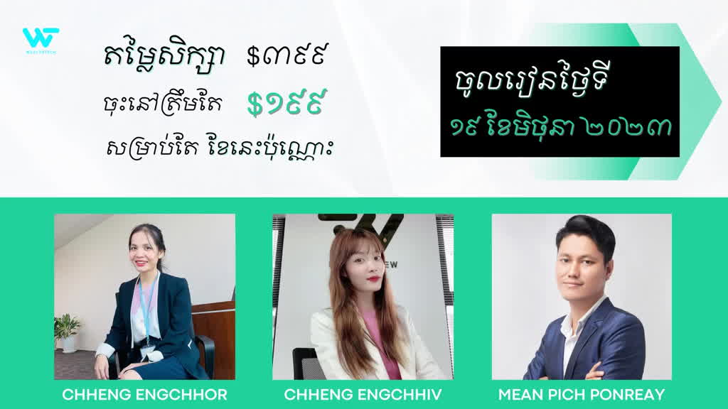 ចំណេះដឹងរបស់អ្នក ស្មើនឹងចំណូលរបស់អ្នក អ្នកមានចំណេះដឹងនិងជំនាញកាន់តែខ្លាំង ធ្វើអោយអ្នកមានចំណូលកាន់តែច្រើនផ្លូវ។ រៀនបង្កើតចំណូលពីការវិនិយោគ ជាមួយនឹងថ្នាក់សិក្សារបស់ WEALTHTECH ។