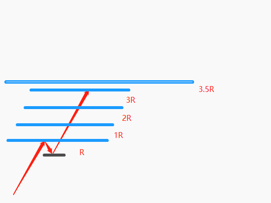 Seperti yang ditunjukkan dalam rajah di atas, dengan mengandaikan bahawa jarak antara titik masuk dan stop loss ialah R, maka kita boleh mula-mula menetapkan take profit kepada R, dan apabila harga mencapai R, bergerak ke arah kedudukan 2R, dan apabila ia mencapai 2R, bergerak ke arah kedudukan 3R Kedudukan sedang bergerak ke hadapan. Kedudukan kejutan bagi kitaran yang lebih besar yang kami nyatakan sebelum ini ialah 3.5R. Dengan mengandaikan bahawa harga berbalik ke bawah selepas mencapai 3R, kemudian ambil untung pada masa ini, dan ia akan dibahagikan dengan cara ini, untuk memaksimumkan keuntungan!